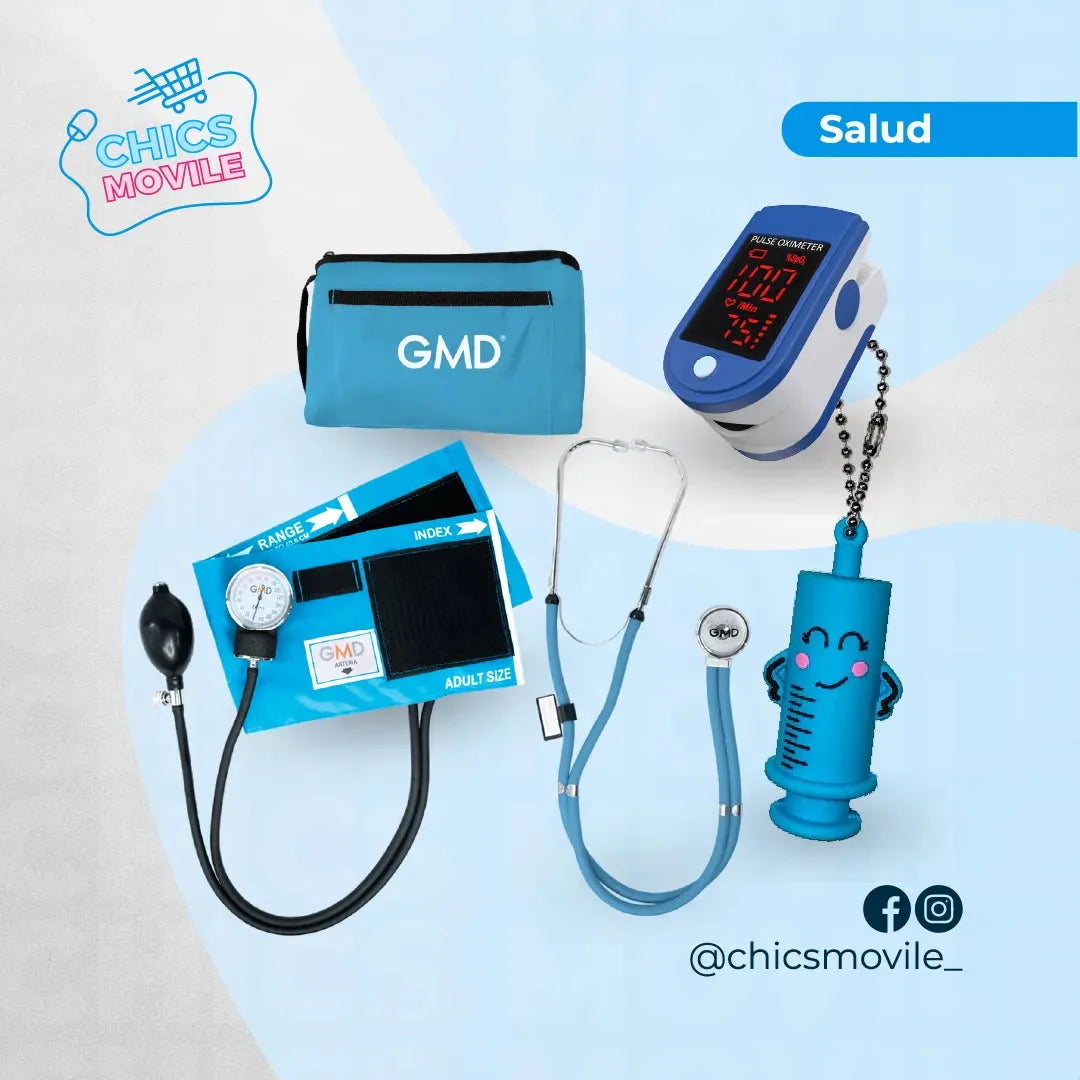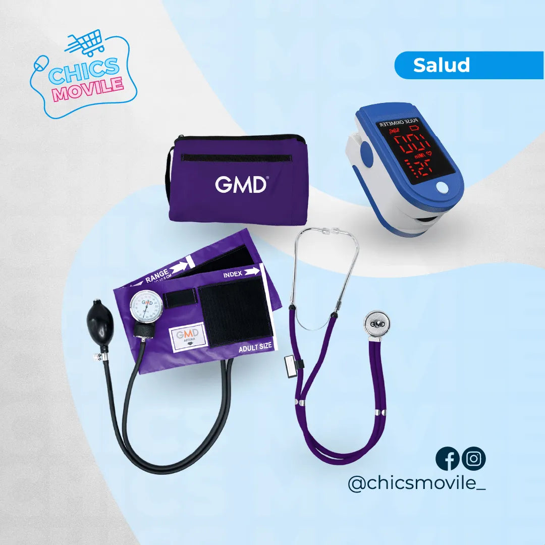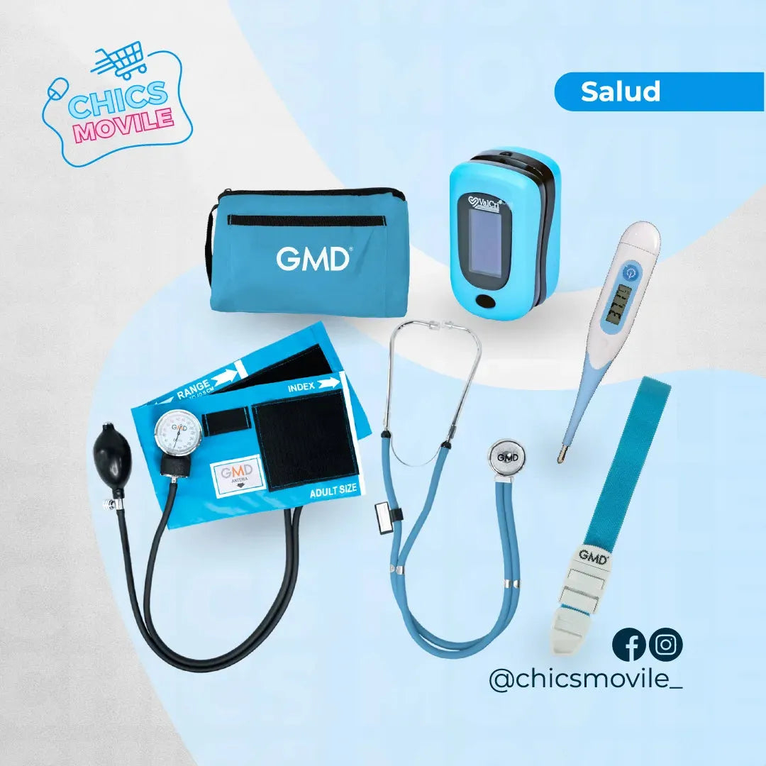 Kit de enfermería GMD Tensiómetro, Fonendoscopio + Oxímetro + Termómetro + Torniquete Elástico