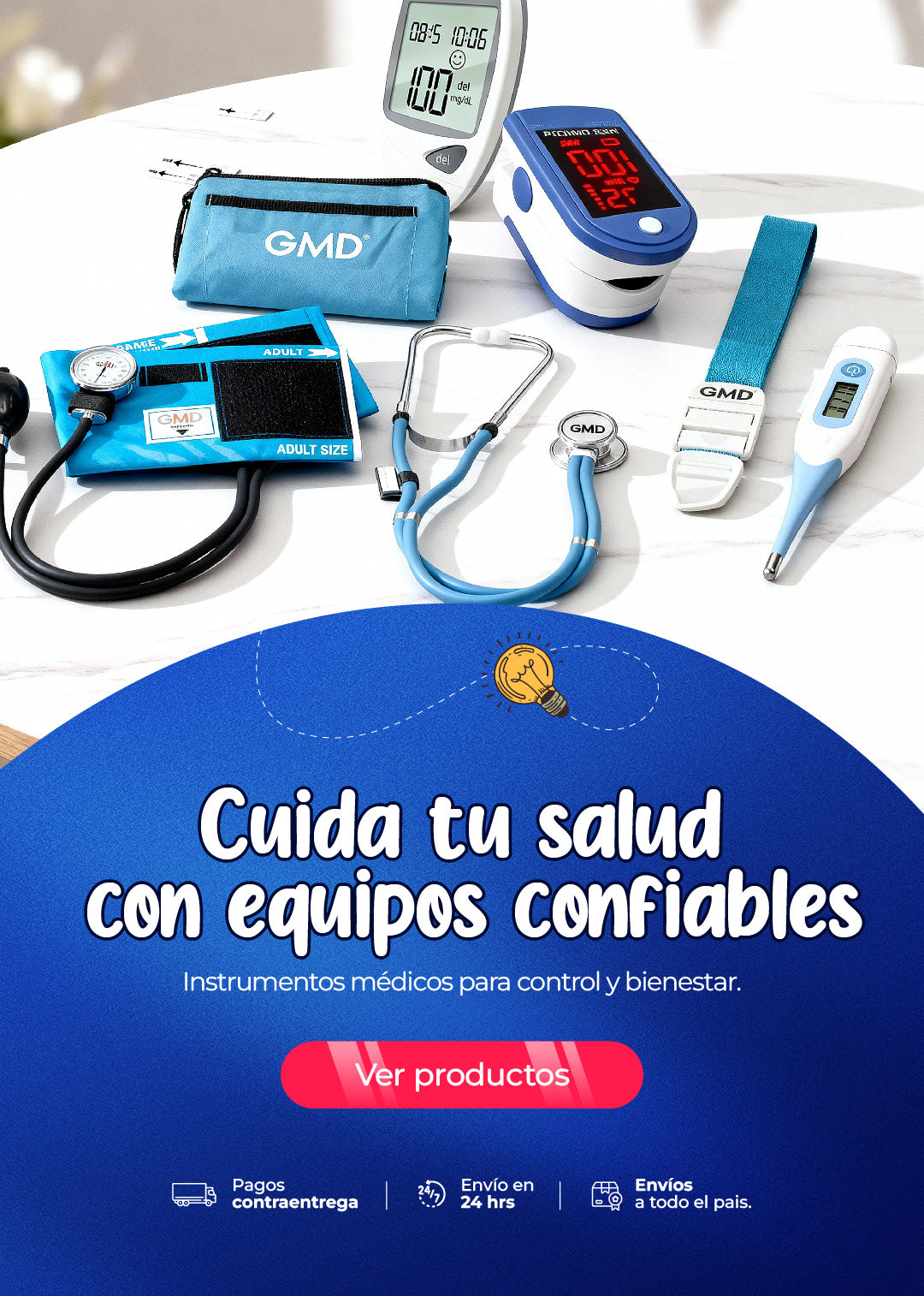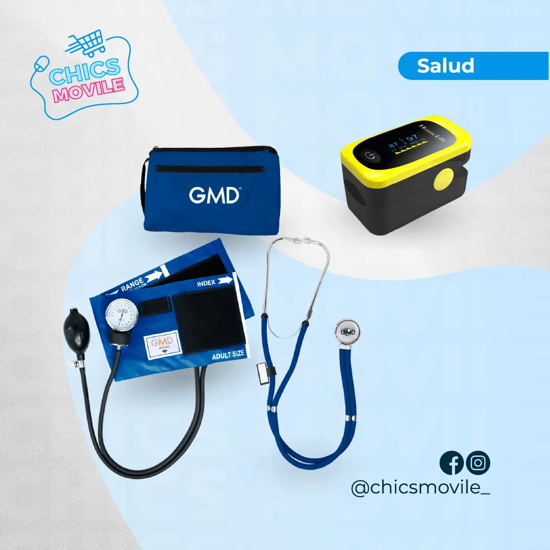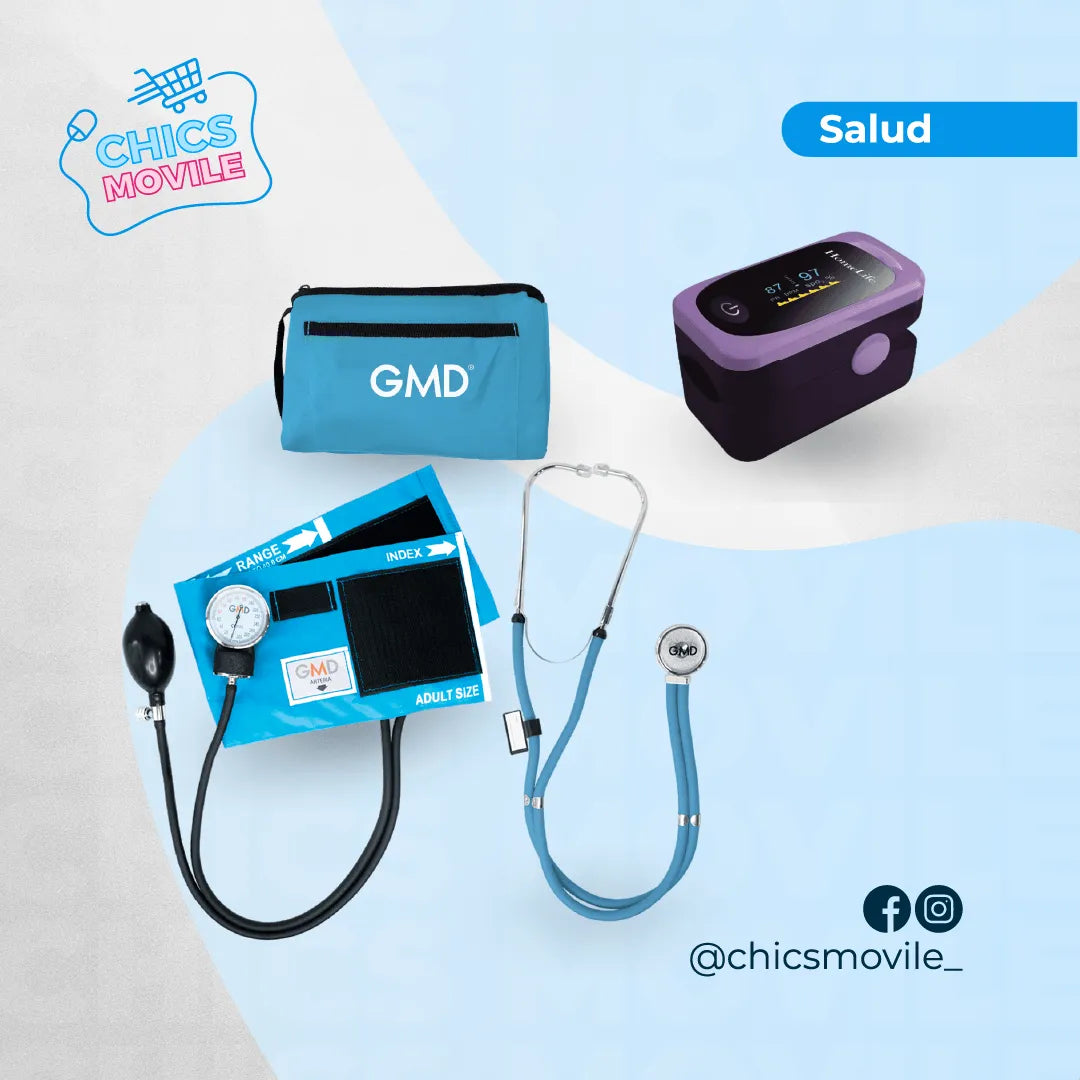Kit de enfermería GMD Tensiómetro, Fonendoscopio + Oxímetro + Termómetro + Torniquete Elástico