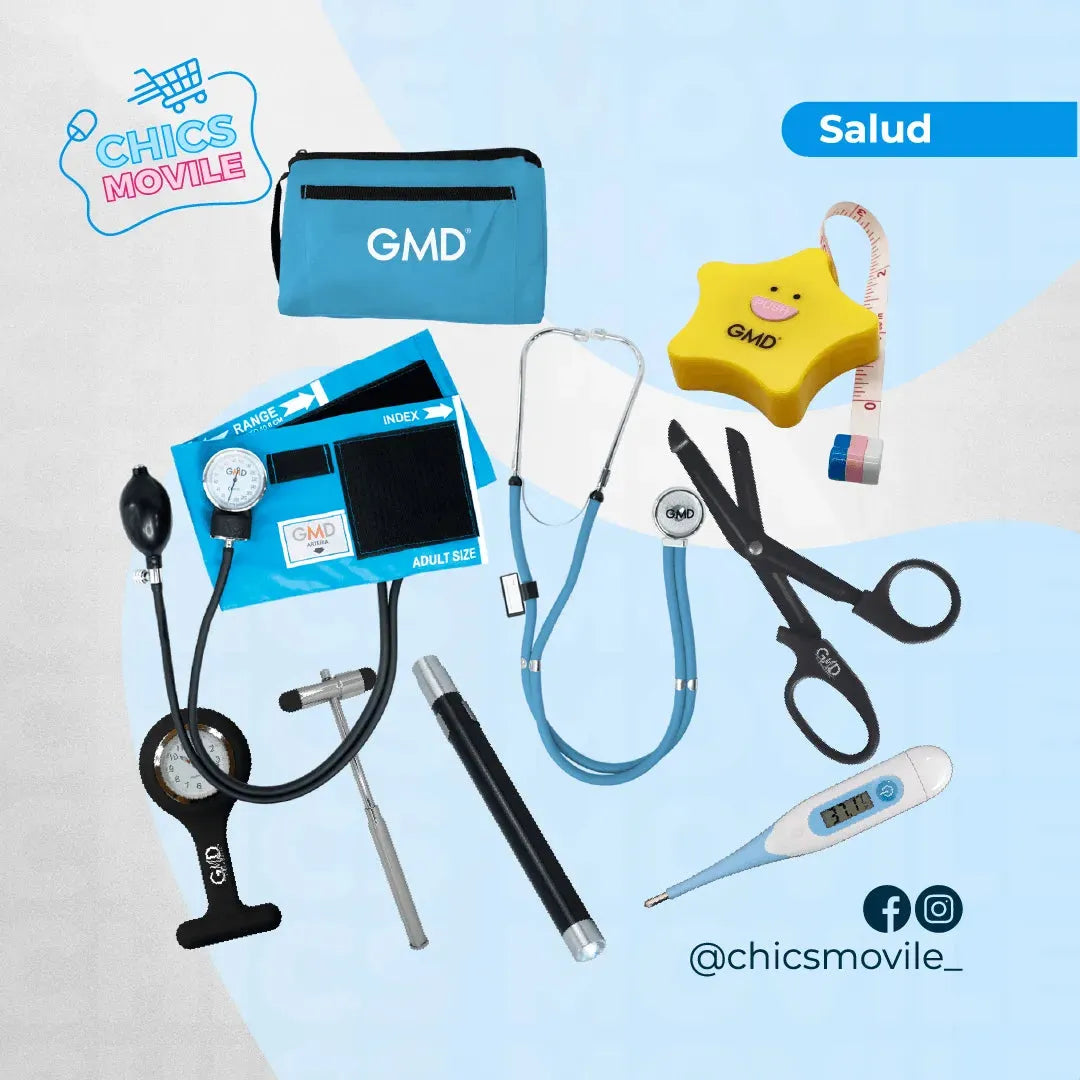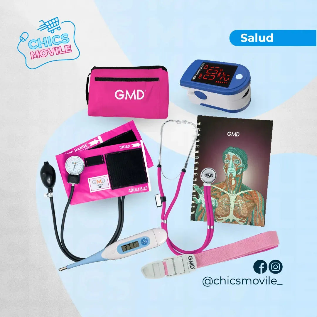 Kit de enfermería GMD Tensiómetro, Fonendoscopio + Oxímetro + Termómetro + Torniquete Elástico + Cuaderno GMD ✅🧑⚕️
