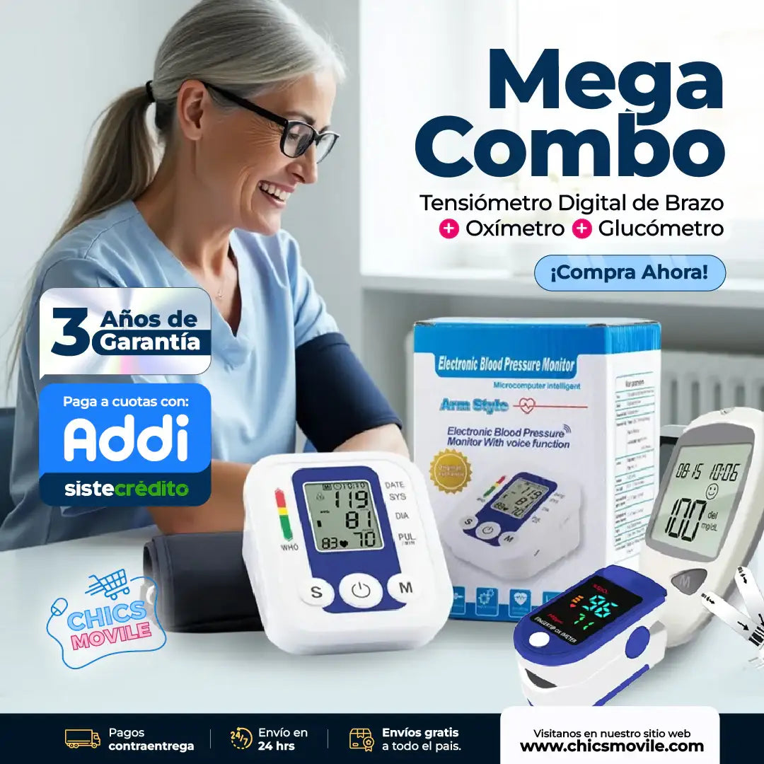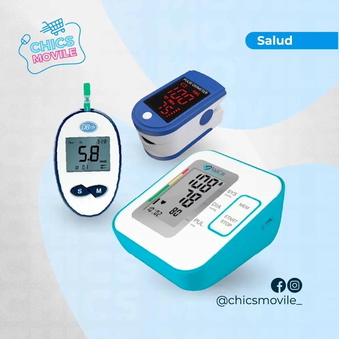 Tensiómetro Digital de Brazo + Oxímetro + Glucómetro