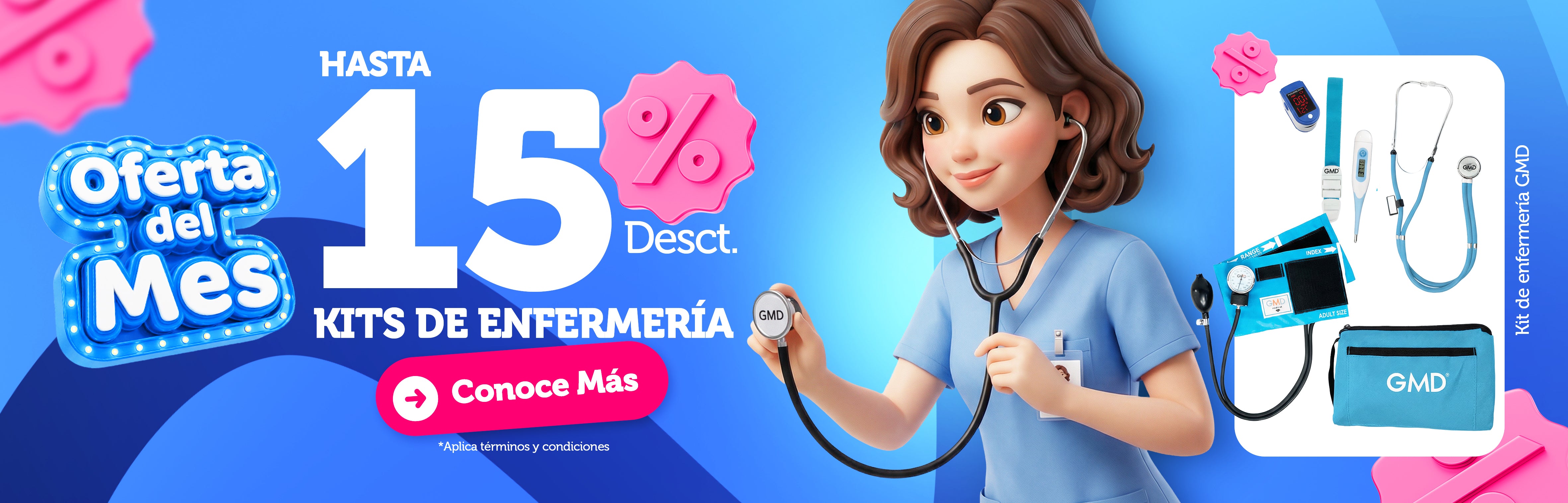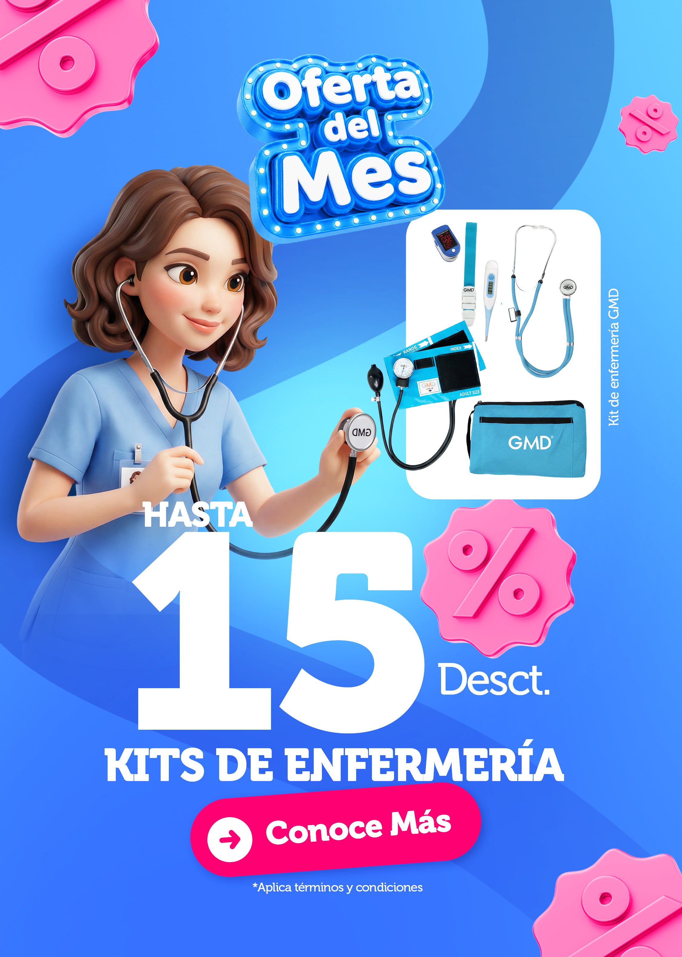 Kit de enfermería GMD Tensiómetro, Fonendoscopio + Oxímetro + Termómetro + Torniquete Elástico + Cuaderno GMD ✅🧑⚕️