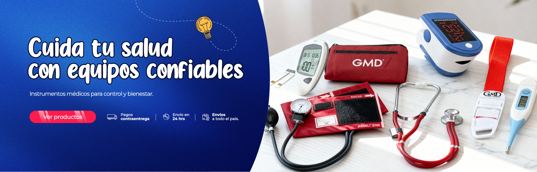 Kit de enfermería GMD Tensiómetro, Fonendoscopio + Oxímetro + Termómetro + Torniquete Elástico