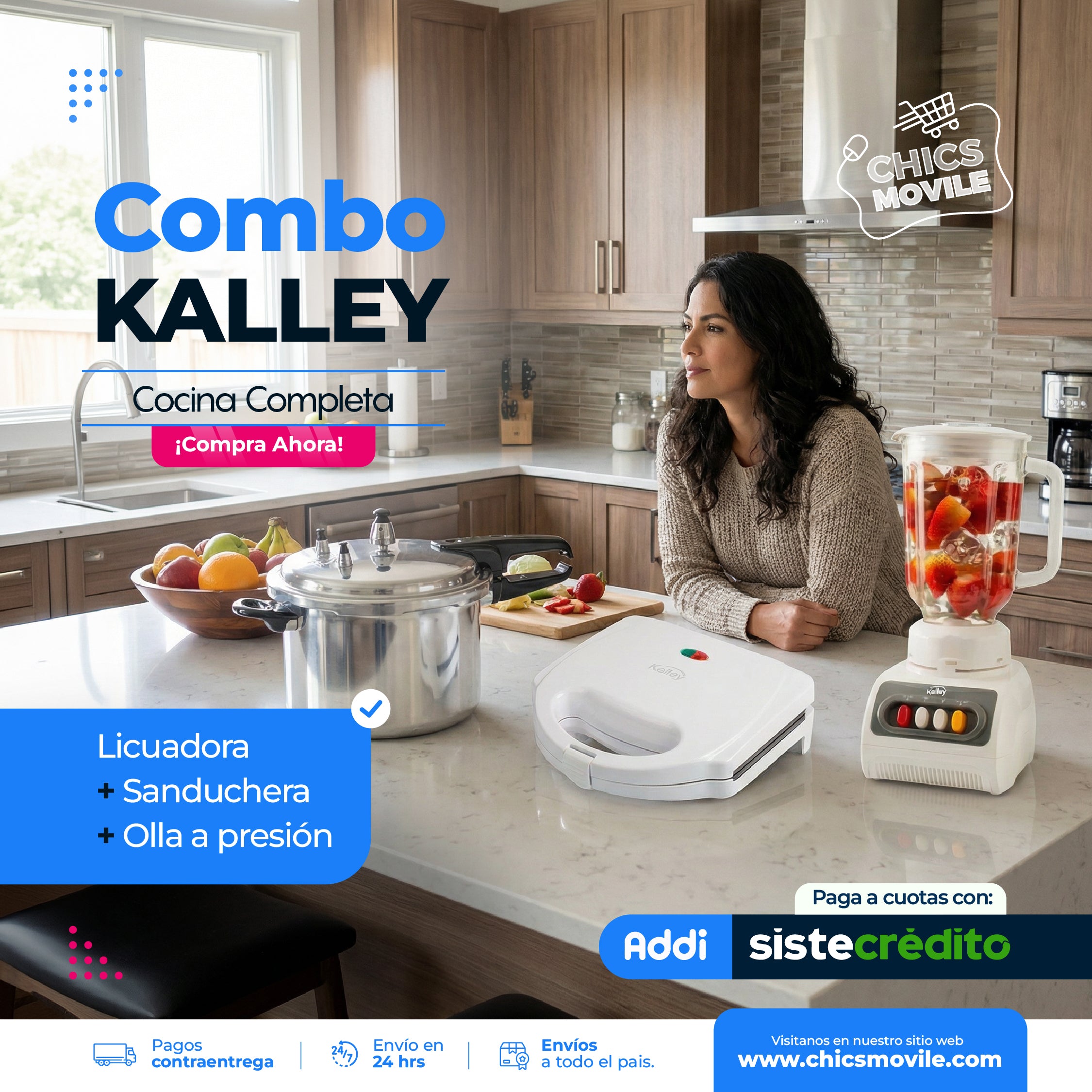 Combo Licuadora Kalley + Olla a presión + Sanduchera