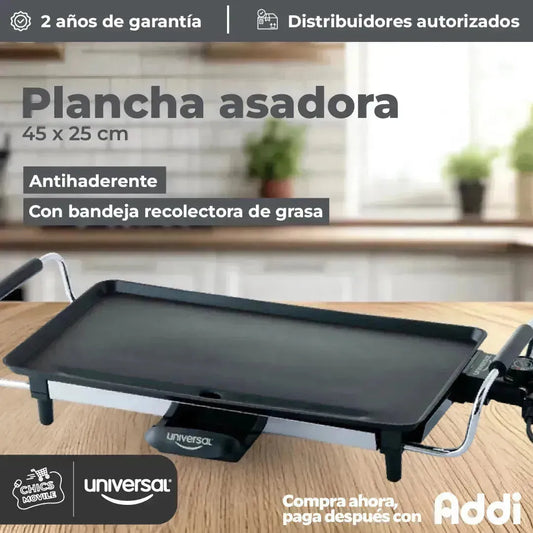 Asador Plancha Eléctrica UNIVERSAL L88350 Lisa Negra 🥩🍖