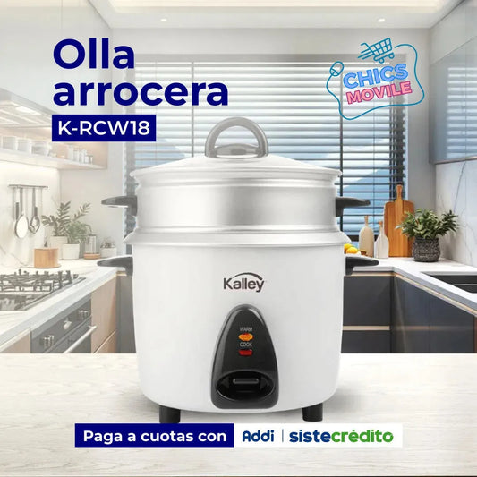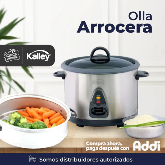 Olla Arrocera KALLEY 10 Tazas Con Vaporera Plateado ✅🍲