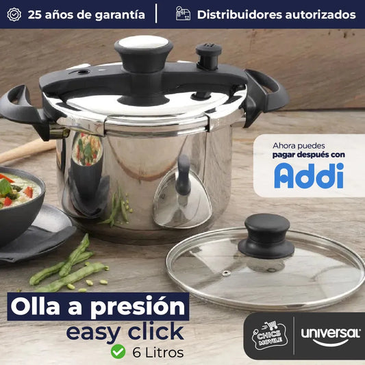 Olla A Presión Easy Click 6 Litros + Tapa De Vidrio 🥩🍗