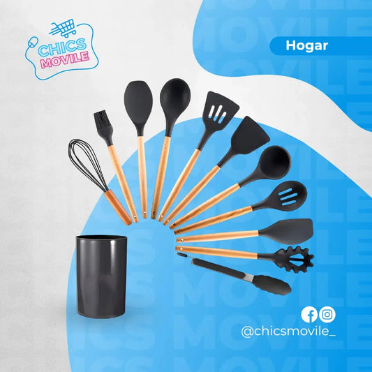 Set 12 Utensilios De Cocina Silicona Resistente Calor 👨🍳🍳