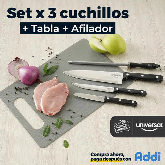 Set X3 Cuchillos + Tabla + Afilador Universal 👨🍳🔪
