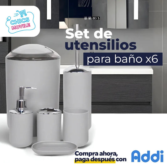 Set Utensilios Accesorios De Baño Jabonera Papelera Juego X6 🚻🛀