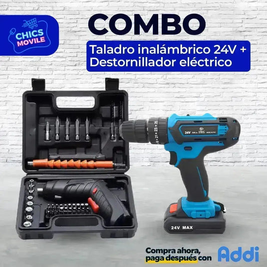 Taladro Inalámbrico Makita Doble Bateria 24v Con 25 Accesorios 👷 + Destornillador Inalambrico Electrico Recargable