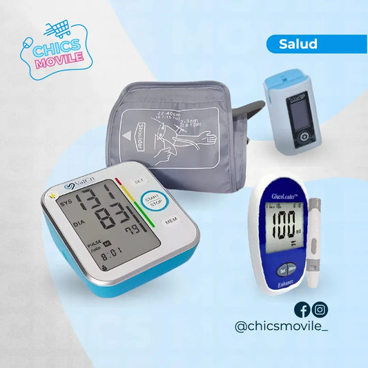 Tensiómetro Digital de Brazo + Oxímetro + Glucómetro