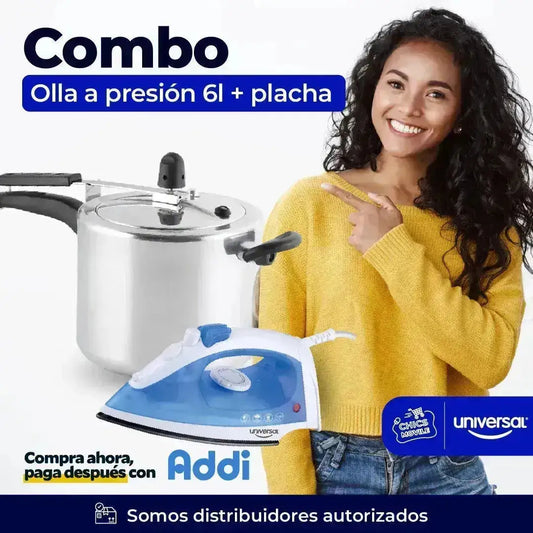 Combo UNIVERSAL Olla Presión 6 Litros + Plancha A Vapor🍲🏠