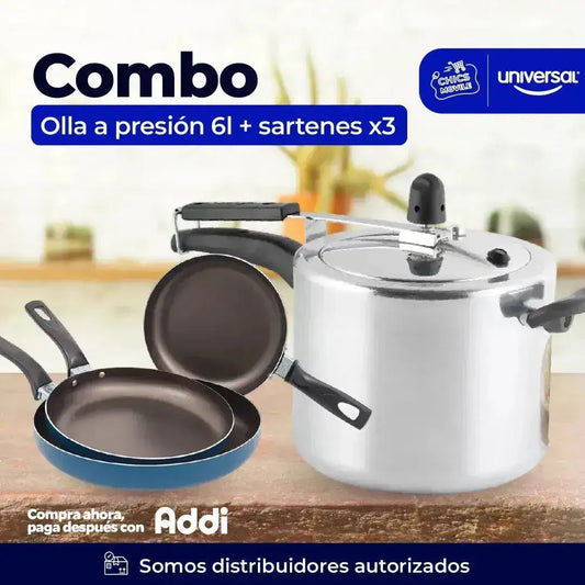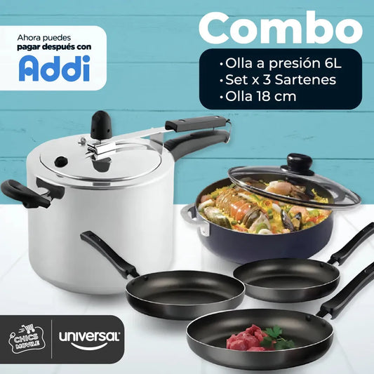 Combo UNIVERSAL Olla a Presión 6Lts + Sartenes X 3 Unidades 👨🍳🍳