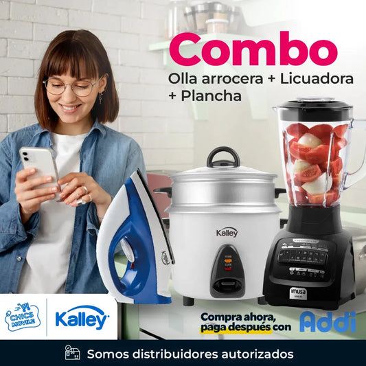 Combo Licuadora Imusa + Plancha + Olla Arrocera Kalley ✅🏠🧥