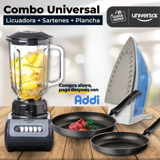 Combo UNIVERSAL Licuadora + Plancha + Set x 2 Sartenes 🍳✅