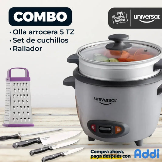Combo UNIVERSAL Olla Arrocera UNIVERSAL 5 Tazas + Set De Cuchillos + Rallador 👨🍳🔪🍚
