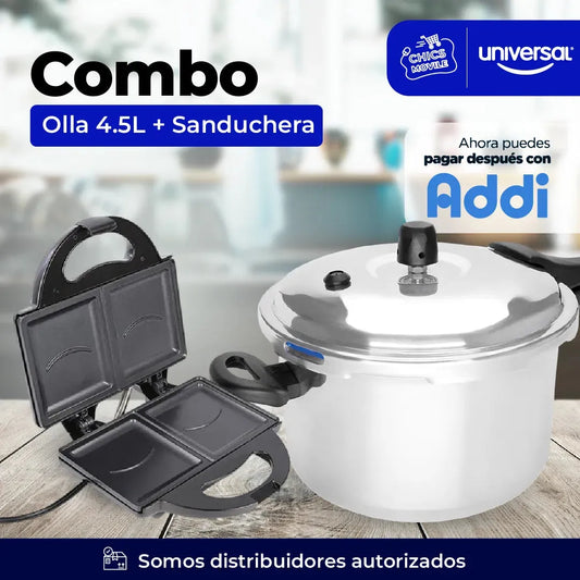 Combo UNIVERSAL Sanduchera + Olla Escencial 4.5 Litros 🍲🏠