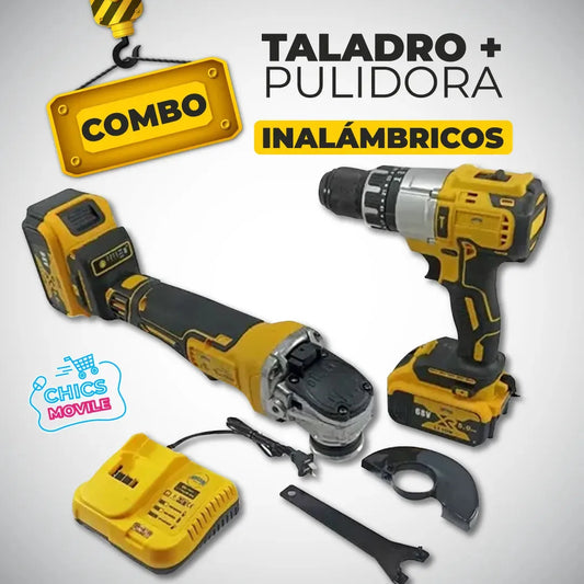Combo Taladro Atornillador Inalámbrico 24V Doble Bateria 25 Accesorios + Pulidora inalambrica 21 V Doble Bateria 👷