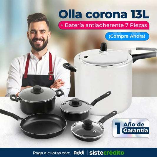 Combo: Batería Antiadherente 7 Piezas + Olla a Presión 13L UNIVERSAL